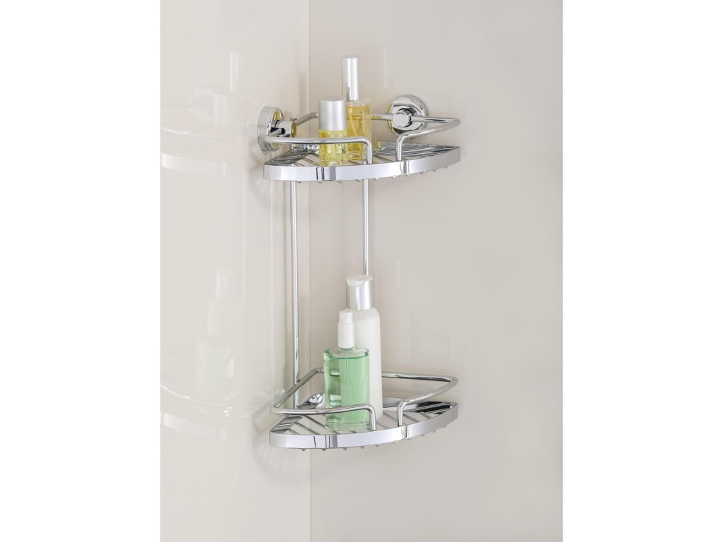 Řada Power-Loc® Sion svým designem a funkčností dodá vaší koupelně elegantní nádech. Patrová prostorná rohová polička Power-Loc® Sion je elegantní řešení pro uskladnění vašich hygienických potřeb, jako jsou sprchové gely, šampony nebo mycí pěny a jiné. Polička je se hodí hlavně do koupelen se sprchovými kouty, kde je její využití maximální. Vaše potřeby budete mít na této polici vždy na dosah. Díky systému snadného zavěšení lze odkládací koš kdykoli snadno odejmout a vyčistit.