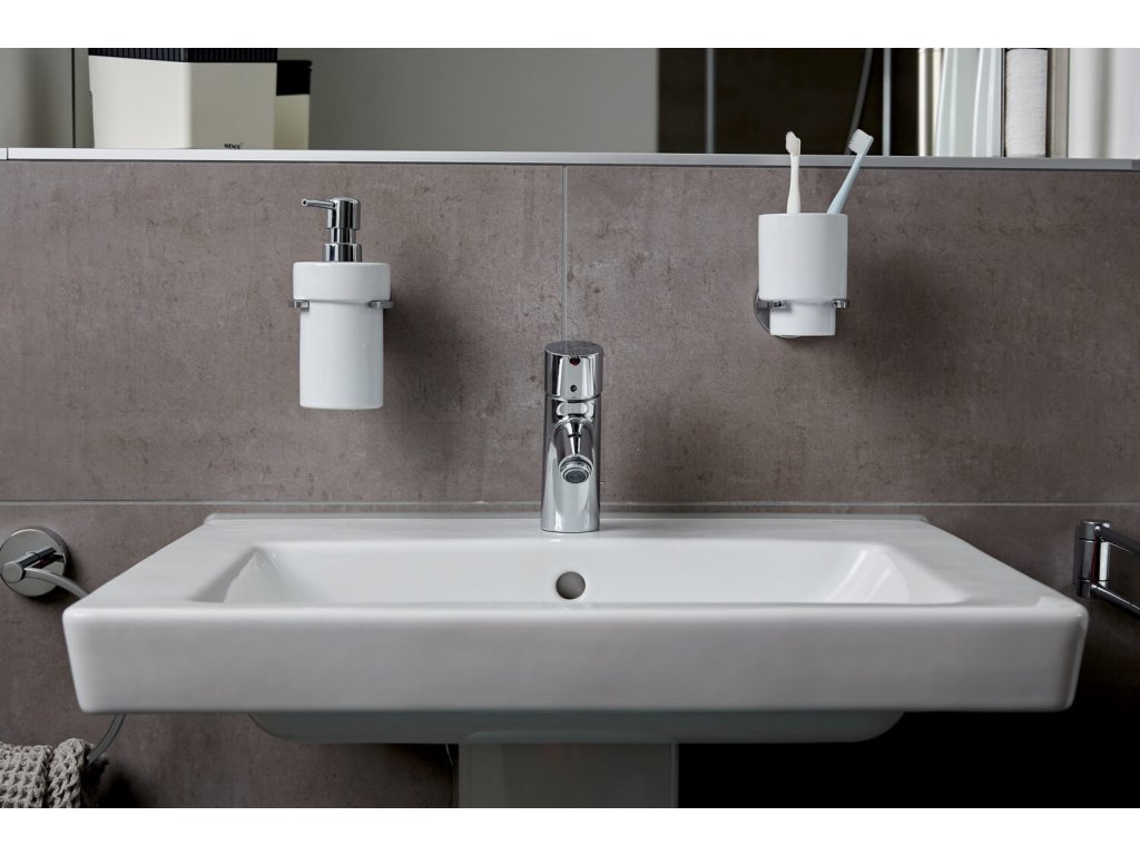 Stylový dávkovač mýdla Vacuum-Loc® ze série Capri je odnímatelný a vyrobený z bílé keramiky. Držák dávkovače mýdla je vyrobený z těžkého tlakového zinkového odlitku, který je pochromovaný a odolný proti korozi. Mýdlenka disponuje všestrannými možnostmi montáže.