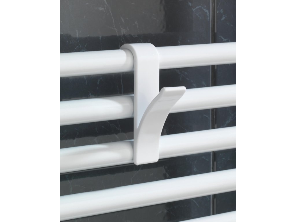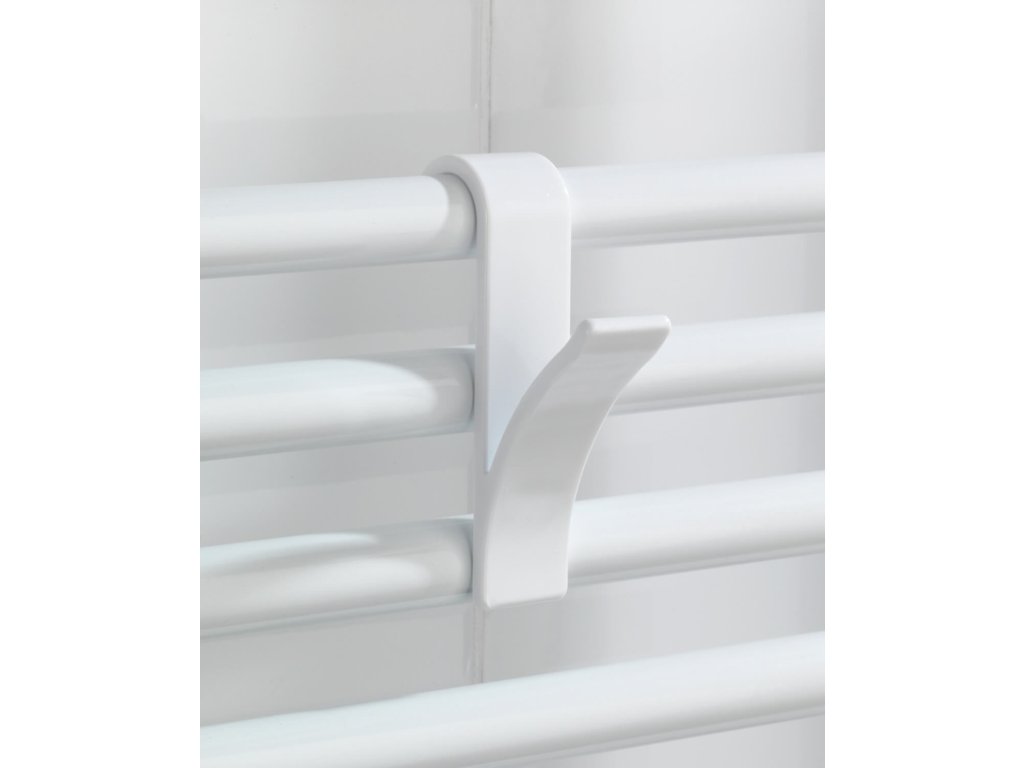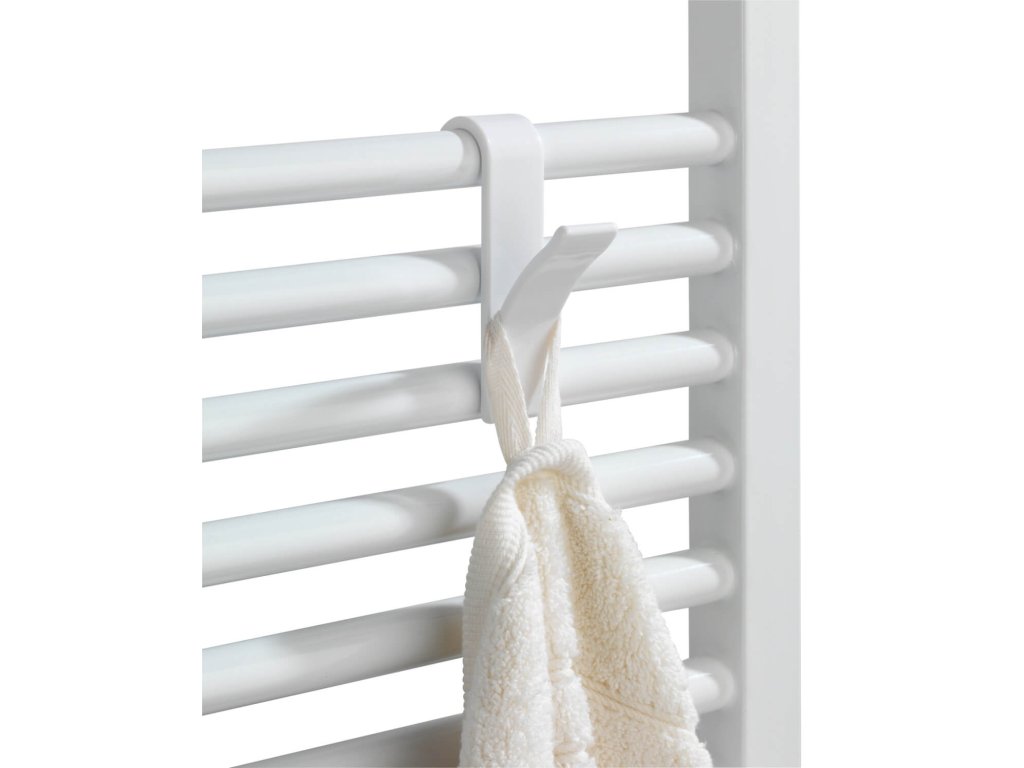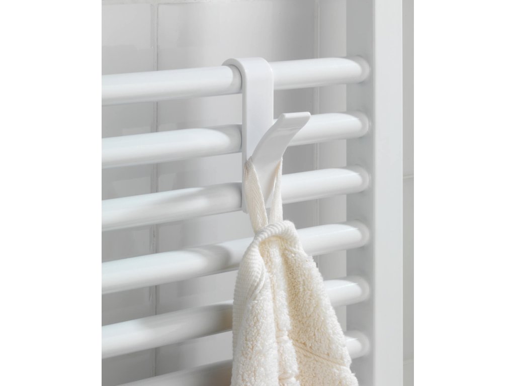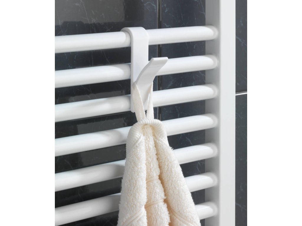 Tyto dva praktické háčky vyrobené z odolného plastu zaručují pořádek na koupelnovém radiátoru. Díky svému decentnímu bílému designu vytvoří užiteční pomocníci na radiátoru místo pro několik ručníků do vany a sprchy.
