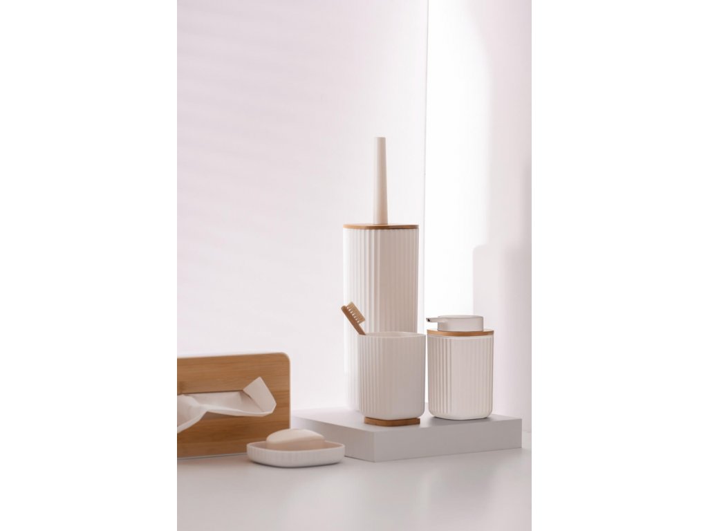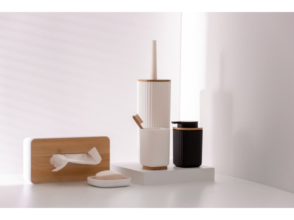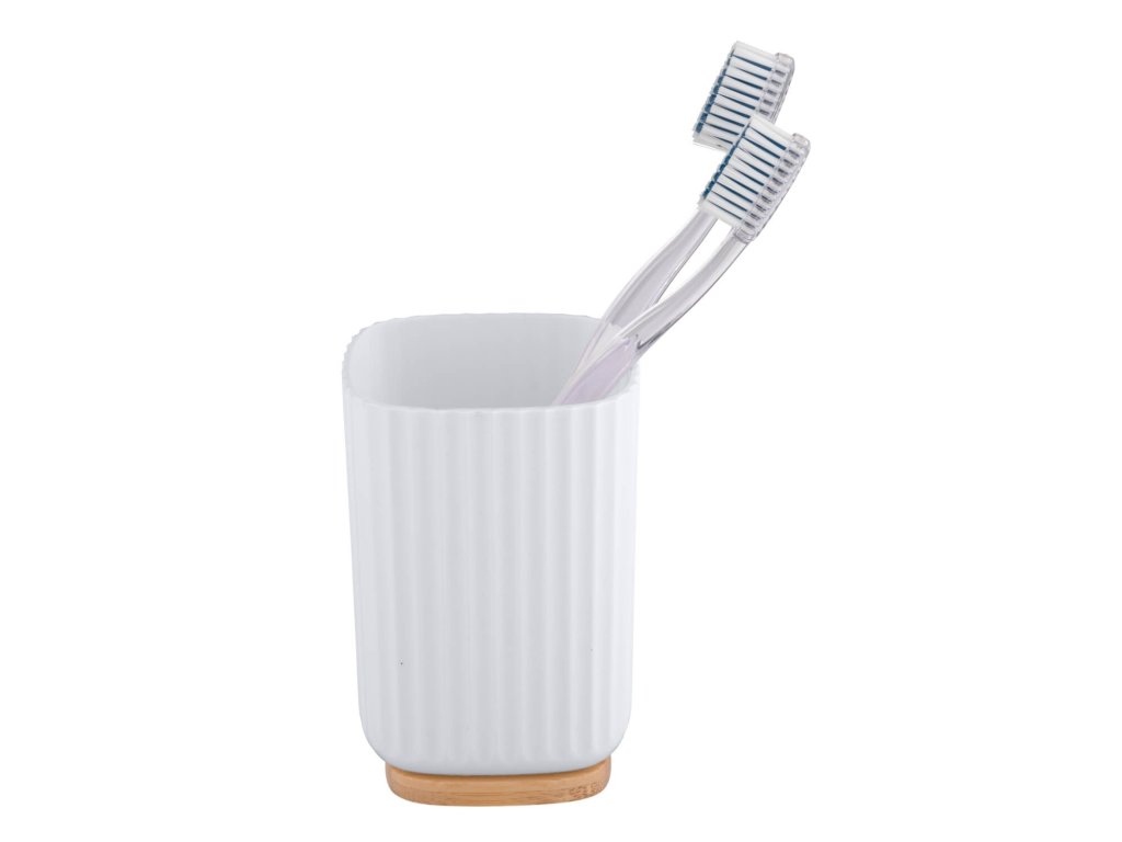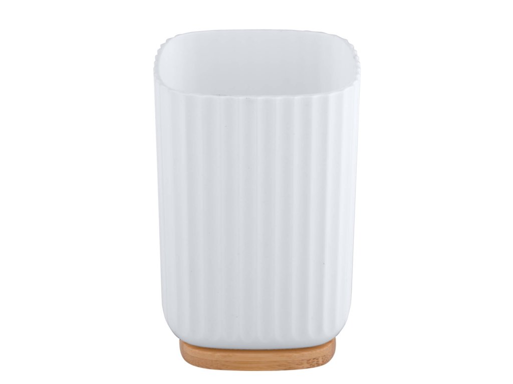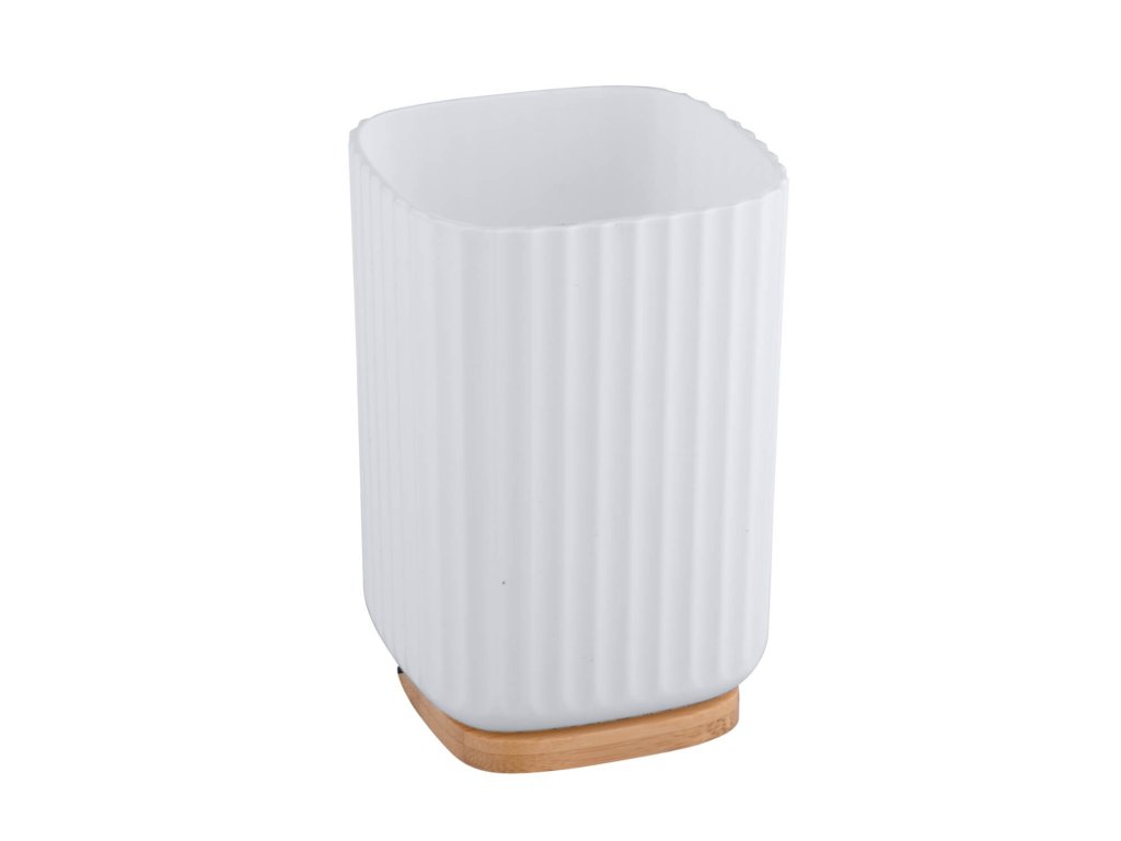 Toaletní kelímek Rotello v bílém provedení je ideálním způsobem, jak uchovat každodenní koupelnové potřeby s elegancí a stylem. Tento kelímek je součástí série Rotello od značky WENKO, která spojuje moderní design s přírodní krásou bambusu, rychle obnovitelného surového materiálu. Poskytuje vhodné místo pro zubní kartáčky, zubní pasty a další koupelnové doplňky, pomáhající vám udržet vaše denní potřeby organizované a snadno dostupné. Čtvercový tvar kelímku s zaoblenými hranami ho odlišuje od tradičních kulatých modelů, čímž vytváří jedinečný a poutavý doplněk pro váš umyvadlo, poličku nebo jakékoliv místo, kde preferujete uložení koupelnových potřeb. Jeho nenápadný rýhovaný design zajišťuje pevný úchop a předchází sklouznutí při plnění a vylévání. Tento funkční detail přispívá k celkovému uživatelskému komfortu. Co ještě víc, toaletní kelímek Rotello není omezen jen na úložku pro zubní hygienu. Snadno se přemění na úložný prostor pro kosmetické kartáčky, holičské nástroje nebo jiné hygienické potřeby, pomáhající udržet pořádek ve vaší koupelně. Jeho diskrétní design se pohodlně sladí s vybavením vaší koupelny. Tento toaletní kelímek lze doplnit o další příslušenství ze série Rotello, jako jsou držáky na ubrousky, držák na mýdlo, kartáč na WC nebo dávkovač na mýdlo. Preferujete tmavé doplňky? Série Rotello je k dispozici také v černém provedení!Doplňkové parametry
