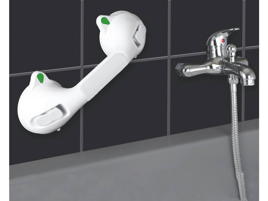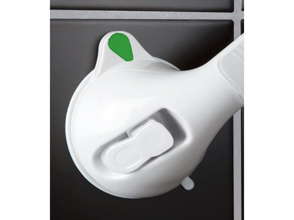 Madlo je možné snadno upevnit pomocí silného přísavného mechanismu a následně opět sejmout. Vysoce kvalitní, pevný plast. Ergonomická manipulace díky rukojeti otočné o 180°. Se speciálními indikátory pro přísavky: zelená = OK, upevněno! červená = Pozor, uvolněné.