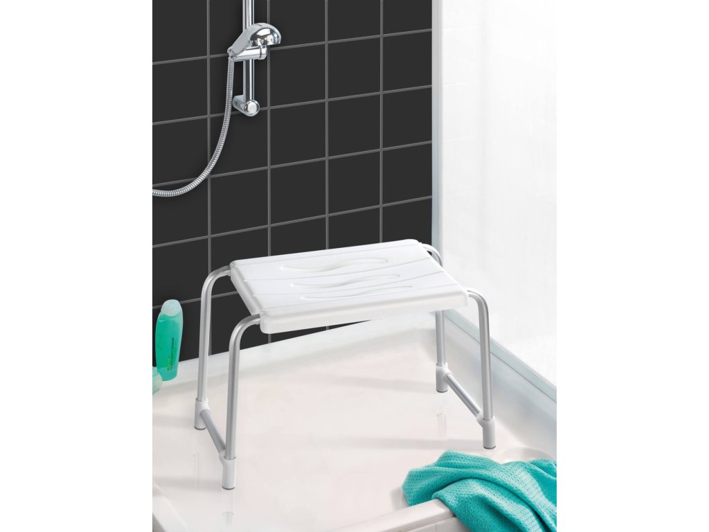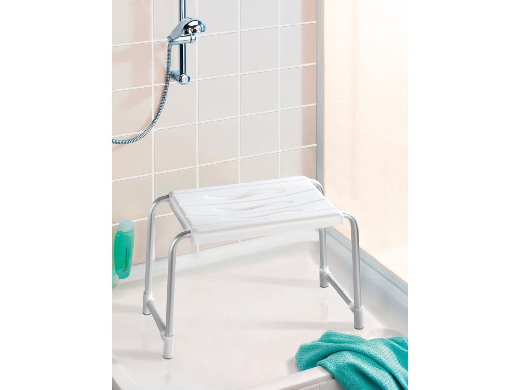 Robustní stolička do sprchy a vany poskytuje větší bezpečnost a pohodlí při sprchování nebo koupeli. Speciální stolička testovaná podle TÜV/GS je ideální pomůckou pro sezení ve sprše nebo ve vaně. Má mimořádně širokou sedací plochu 36 x 26 cm a nosnost až 120 kg. Hliníkové nerezové nohy s protiskluzovými gumovými krytkami zajišťují bezpečnost a chrání podkladovou plochu.